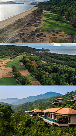 Designed by six-time Major champion Sir Nick Faldo, the 18-hole championship course is renowned for its strategic layout and breathtaking setting—stretching between jungle-clad mountains and the East Sea, with natural streams, rice paddies, and rock formations all integrated into the playing experience.